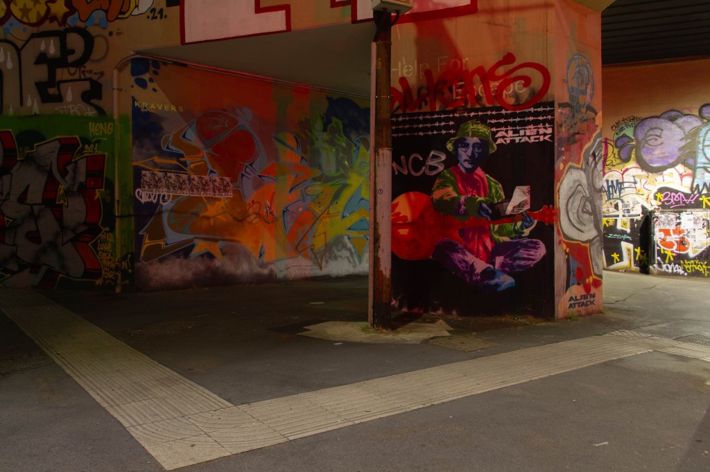 Marc Augé, nel suo lavoro sui “non-luoghi,” descrive spazi transitori e anonimi come aeroporti, autostrade, centri commerciali, e sottopassi. Questi spazi, privi di identità, storia e relazioni sociali significative, sono una presenza inevitabile nella vita moderna. Nel contesto urbano, i sottopassi e i ponti autostradali rappresentano perfettamente questi non-luoghi. Tuttavia, attraverso il graffitismo, questi spazi anonimi si trasformano in tele per l’espressione artistica e la resistenza. I graffiti, con i loro colori vivaci e messaggi provocatori, conferiscono a questi luoghi un nuovo significato e una nuova identità. Come fotografo e artista, il mio obiettivo in questo progetto è simile a quello degli artisti di graffiti: dare voce e identità a questi non-luoghi. Attraverso le mie fotografie, cerco di catturare e rivelare la bellezza nascosta e la vitalità di questi spazi, trasformandoli in luoghi di significato artistico e sociale.